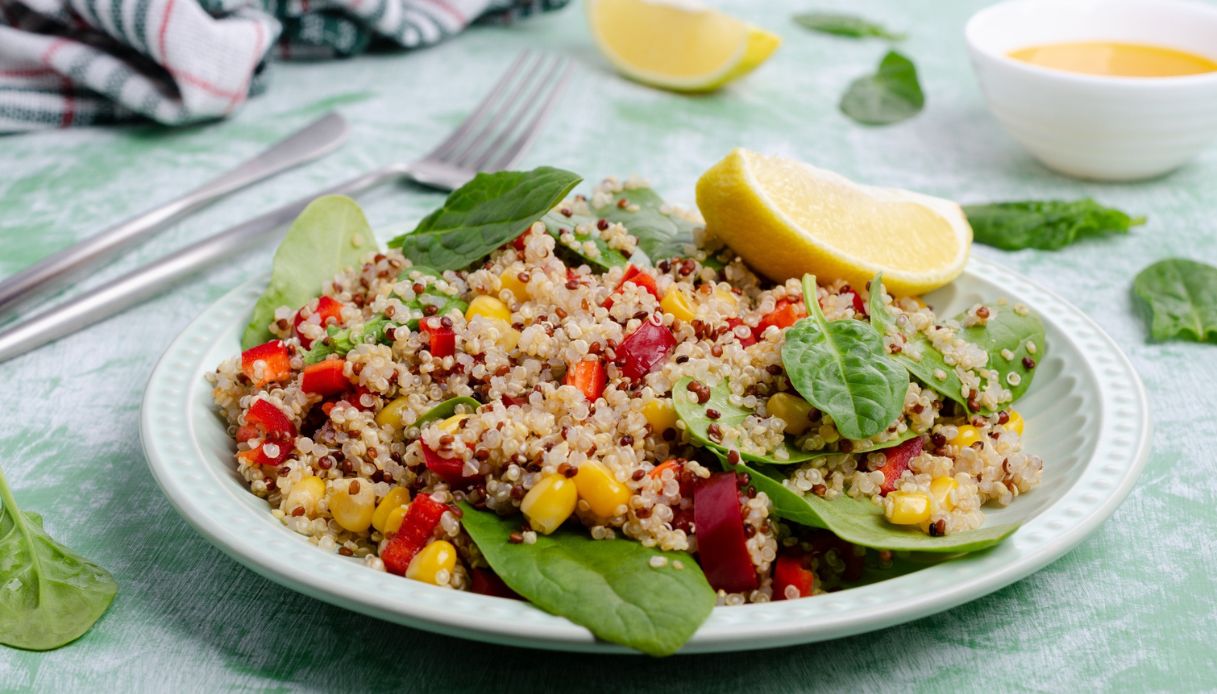 - insalata di spinaci e quinoa: preparate un’insalata con 2 tazze di spinaci freschi, 1 tazza di quinoa cotta, 1 pomodoro tagliato a cubetti, 1 cetriolo tagliato a cubetti, un quarto di cipolla rossa affettata sottilmente, il succo di 1 limone, 2 cucchiai di olio d’oliva, sale e pepe;