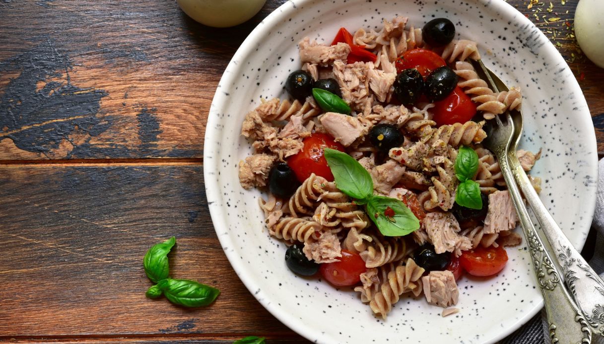 Ingredienti: 200 g di pasta integrale (farfalle o fusilli), 1 scatoletta di tonno al naturale, 1 peperone rosso, 1 cetriolo, 10 olive nere denocciolate, 1 carota, succo di 1 limone, 2 cucchiai di olio extravergine d’oliva, sale, pepe