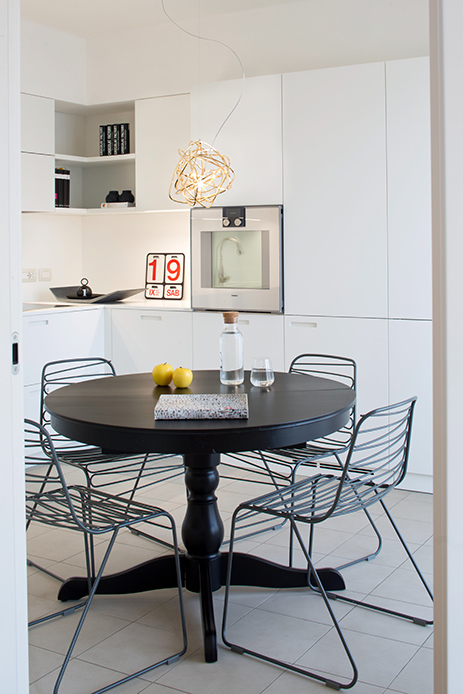 Fedele ai gusti dei proprietari, amanti dell’arte, l’appartamento ospita una selezione raffinata di opere contemporanee. Le pareti bianche fungono da galleria ideale per dipinti e installazioni, inseriti con cura in ogni ambiente.