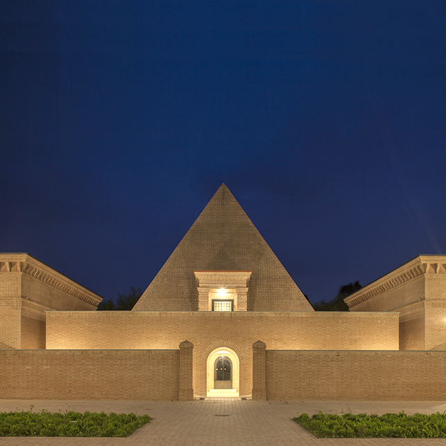 Superato il dedalo, al centro si apre un’inaspettata piazza segreta: un ampio spazio di circa duemila metri quadri incorniciato da eleganti porticati in stile classico. Qui sorge una cappella a forma di piramide, che emerge come un simbolo spirituale e geometrico tra le alte pareti verdi del labirinto.