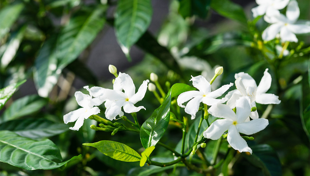 Oltre alle specie classiche adatte ai nostri giardini, esistono alcuni rampicanti profumati esotici o annuali che meritano una menzione per chi vuole sperimentare fragranze particolari. Uno di questi è il Gelsomino del Madagascar, una liana tropicale dai fiori bianchi cerosi dal profumo concentrato e inebriante, simile a quello dei fiori d’arancio.