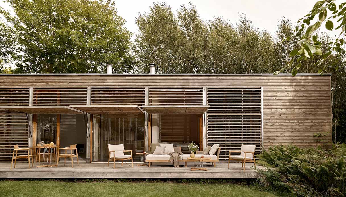 In questo contesto, i mobili outdoor adottano proporzioni domestiche e forme pulite. Un esempio emblematico di questo approccio è la ricerca di un comfort raffinato che evochi l’interior design anche in giardino, come dimostrato dalla serie Embrace Outdoor di Carl Hansen & Søn.