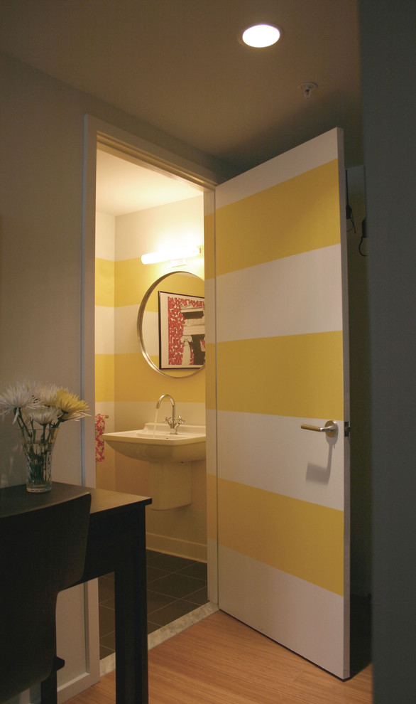 A volte, per esempio, può bastare una porta da interni colorata in vetro, così da preservare la trasparenza, e aggiungere un effetto cromatico elegante. Altre, invece, si sceglie la porta colorata per riprendere la tinta decisa di una parete d’accento audace. Altre volte ancora, la porta diventa il focus del progetto di design e per ravvivare un soggiorno bianco si adottano porte interne di colori diversi l’uno dall’altro – giallo, rosso, blu e nero – come se il living candido fosse la tela di un’opera di Mondrian.
