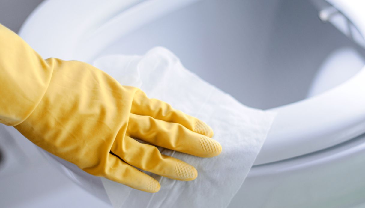 Per coprire la seduta e il coperchio del wc invece usa sale e acqua calda mescolati insieme. Passa la sostanza su tutta la struttura usando un panno umido e asciugando con cura.