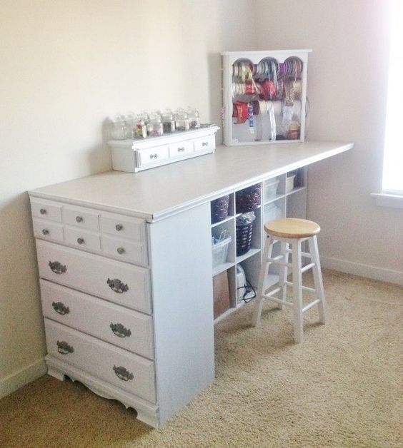Questa idea è perfetta per chi ha un po’ di spazio in più in cucina, e non sa come sfruttarlo. Dal momento che il piano di lavoro spesso non è sufficiente, soprattutto se amate stare ai fornelli e preparare tante squisite pietanze, potreste crearne uno nuovo. Procuratevi due vecchie cassettiere e, se necessario, rimettetele a nuovo con un po’ di creatività (ad esempio trasformandole in complementi d’arredo shabby chic). Quindi posizionatele contro il muro e incollatevi sopra un piano di lavoro – va benissimo anche una vecchia tavola di legno, purché sia ben carteggiata. Avrete realizzato un angolo perfetto per fare il pane in casa o per preparare buonissimi dolci. E le cassettiere si riveleranno utili per tutti i vostri utensili da cucina.