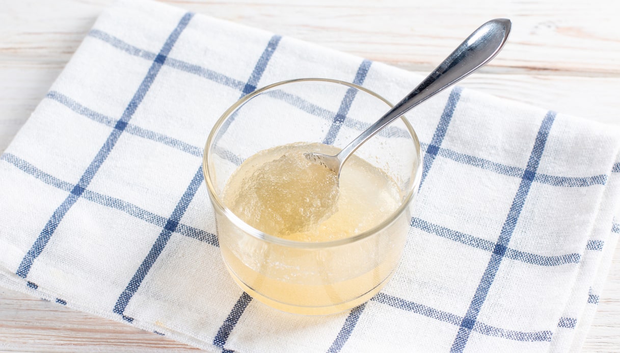La gelatina alimentare, come già detto, è un addensante naturale: la più conosciuta è la colla di pesce, così chiamata perché un tempo veniva realizzata partendo dalle vesciche natatorie e dalla cartilagine dei pesci. La si trova in commercio sia in fogli che in polvere, ed è davvero molto facile da usare. Quella in fogli va dapprima messa a bagno in acqua fredda per almeno 10 minuti, quindi occorre strizzarla e farla sciogliere in un pentolino con latte o brodo (a seconda dell’uso, per ricette dolci o salate), mettendolo su un fornello a fiamma bassa. Quella in polvere, invece, la si mette in acqua lasciandola reidratare per circa 15 minuti, poi la si scalda a fiamma bassa e la si aggiunge al liquido da addensare.