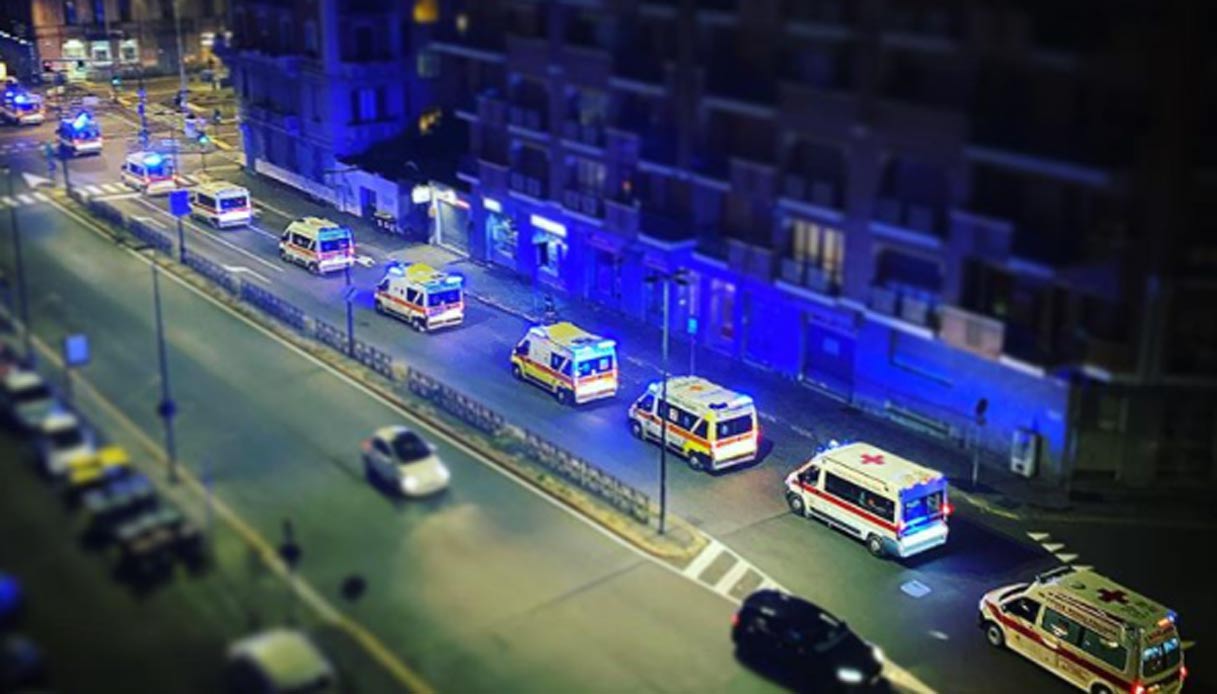 Arriva da Torino la foto simbolo della seconda ondata, a scattarla e postarla su Instagram è Pietro Izzo. Una lunga coda di dieci ambulanze, con le sirene spente e le luci blu accese, quasi a creare un collage di quelle che sembrano giocattoli, che in un silenzio irreale raccontano una storia.