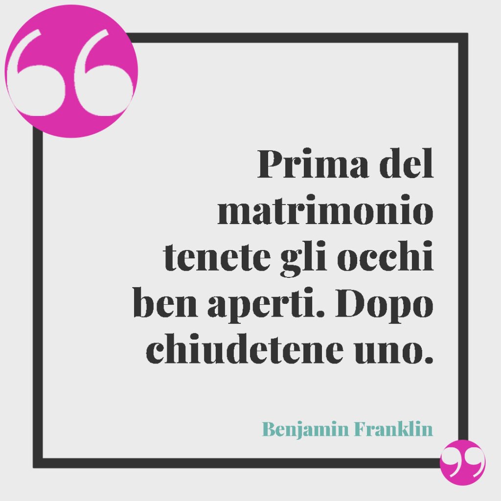 - Prima del matrimonio tenete gli occhi ben aperti. Dopo chiudetene uno. (Benjamin Franklin)