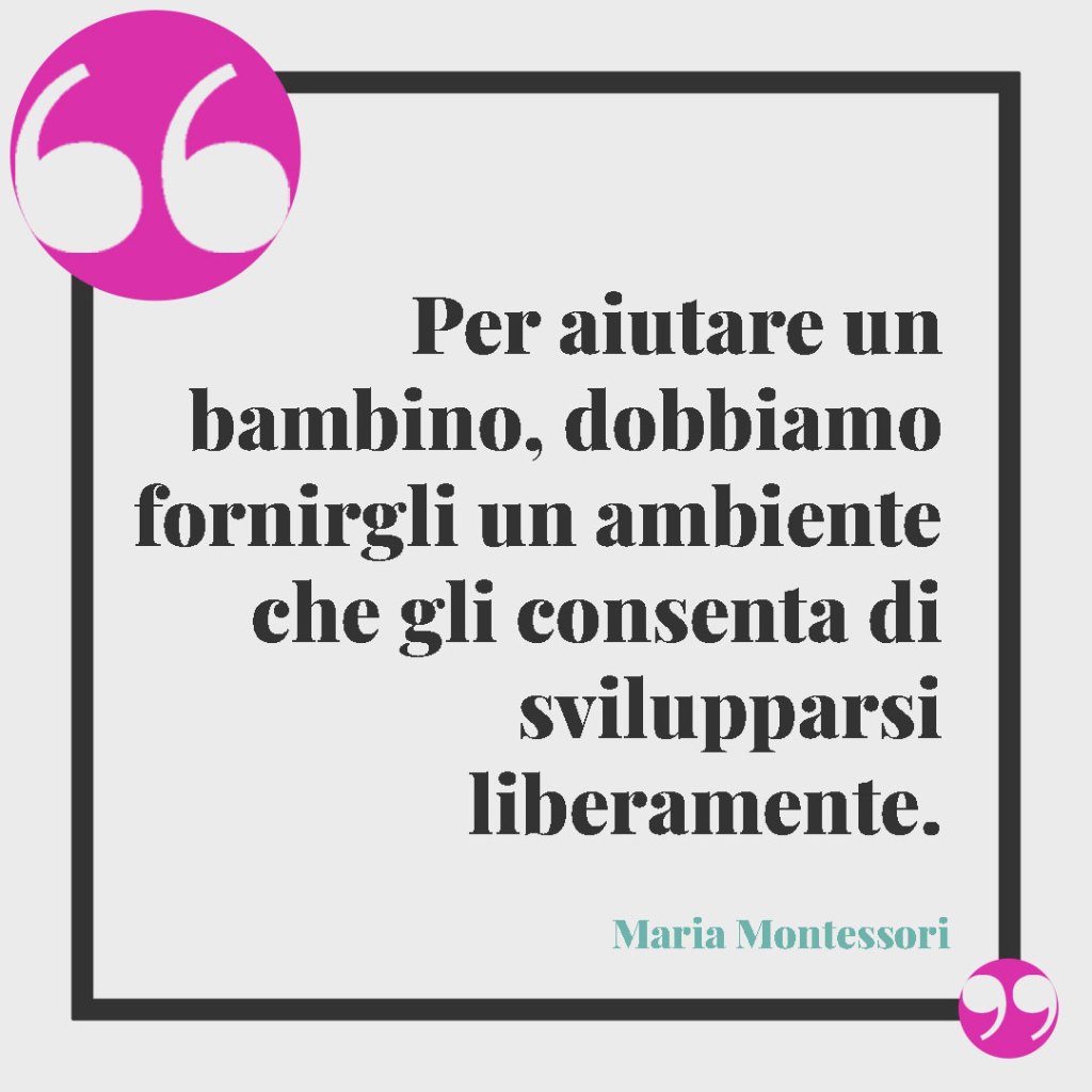 L’approccio educativo di Maria Montessori è improntato sull’indipendenza del bambino in modo da stimolare lo sviluppo naturale, psicologico e sociale. La scienziata ha parlato molto di come educare i più piccoli e del rapporto che i genitori e gli insegnanti dovrebbero stabilire con loro. Per chi sta cercando qualche suggerimento per esprimere concetti sulla crescita dei minori, alcune frasi e aforismi di Maria Montessori sui bambini.