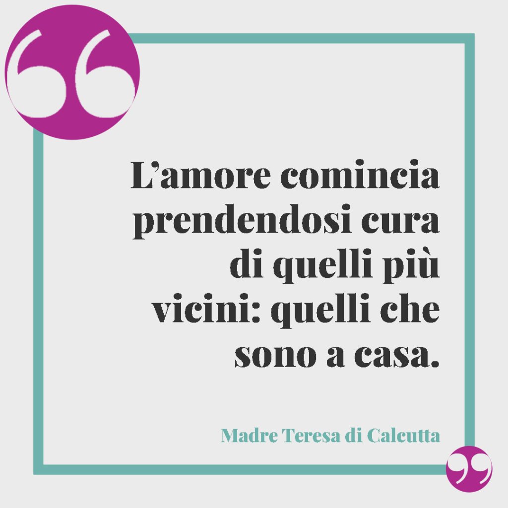 - L’amore comincia prendendosi cura di quelli più vicini: quelli che sono a casa.