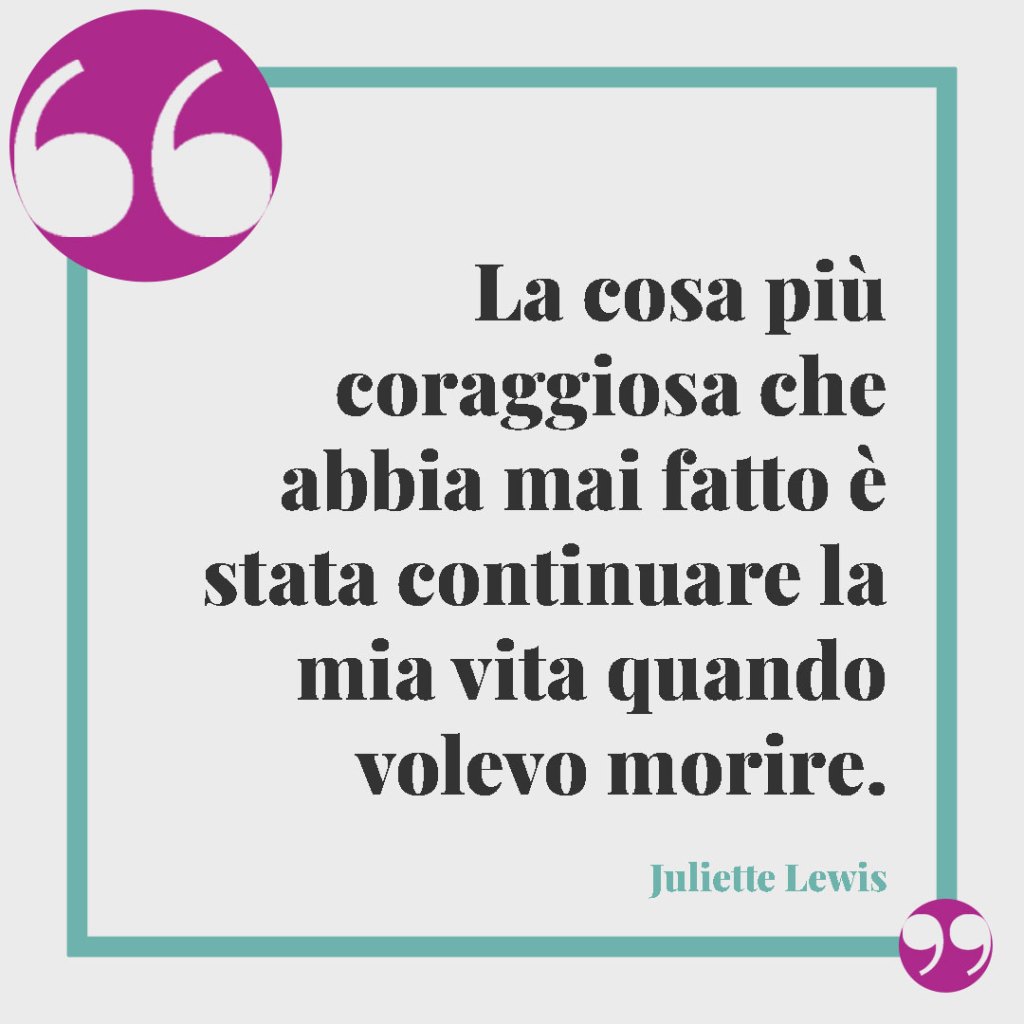 - La cosa più coraggiosa che abbia mai fatto è stata continuare la mia vita quando volevo morire. (Juliette Lewis)