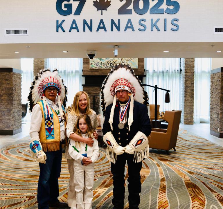 Accanto a Giorgia Meloni, di bianco vestita, c’era la piccola Ginevra: le due, dopo essere state accolte in aeroporto da una delegazione locale, hanno posato per alcuni scatti in compagnia di due nativi americani. Successivamente, la Presidente del Consiglio si trasferirà al Pomeroy Kananaskis Mountain Lodge, dove lunedì 16 e martedì 17 giugno si terranno i lavori del G7. In Canada, sono quindi attesi i leader dei Paesi più influenti del pianeta: in primis Donald Trump, ma non è chiaro se con lui ci sarà la moglie Melania.