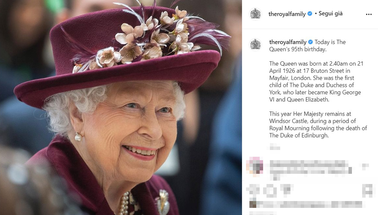 Il messaggio su Instagram che accompagna il ritratto di Sua Maestà è semplice e fa un accenno alla morte di Filippo: “La Regina è nata alle 2.40 del mattino del 21 aprile 1926 al 17 di Bruton Street a Mayfair, Londra. Era la prima figlia del Duca e della Duchessa di York, che in seguito divennero Re Giorgio VI e Regina Elisabetta. Quest’anno Sua Maestà rimane al Castello di Windsor, durante un periodo di lutto reale dopo la morte del Duca di Edimburgo”.