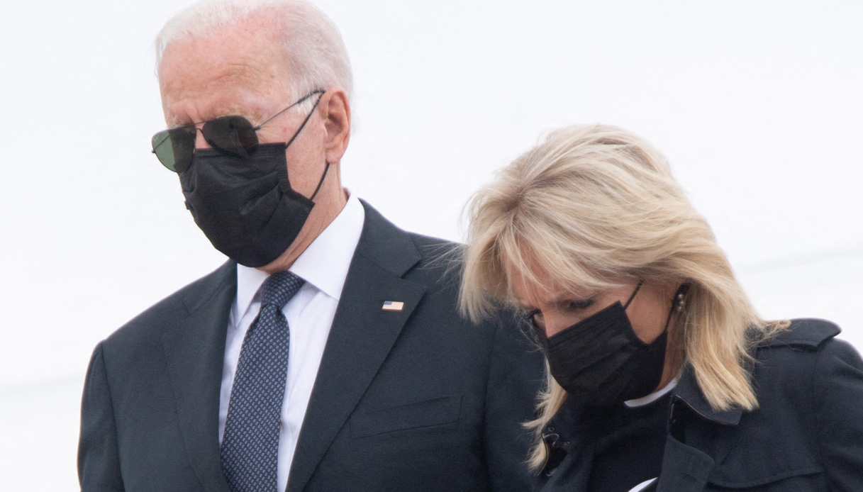 Joe Biden senza preavviso è andato in visita alla base dell’aeronautica di Dover nel Delaware domenica mattina per accogliere le salme dei 13 militari uccisi nell’attacco kamikaze dell’ISIS di giovedì scorso a Kabul. Con lui la First Lady Jill, vestita a lutto come richiesto dalla circostanza, con un completo nero, gonna e giacca bordata di bianco. Mentre ai piedi calzava delle ballerine.