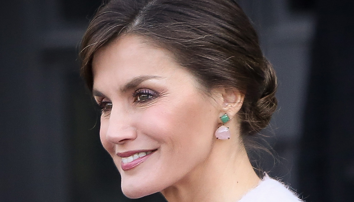 Letizia, come sempre, riduce al minimo i gioielli. A parte il suo anello d’oro di Karen Hallam, regalo delle figlie Leonor e Sofia, indossa un paio di orecchini a cerchio in oro.