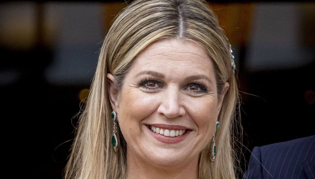 Come accessori, Maxima ha scelto una clutch champagne in raso e sandali in velluto verde scuro. Mentre come gioielli, la Regina ha optato per una collana in brillanti e smeraldi, motivi ripresi dal bracciale e dagli orecchini pendenti. E tra i capelli spunta una farfalla scintillante.