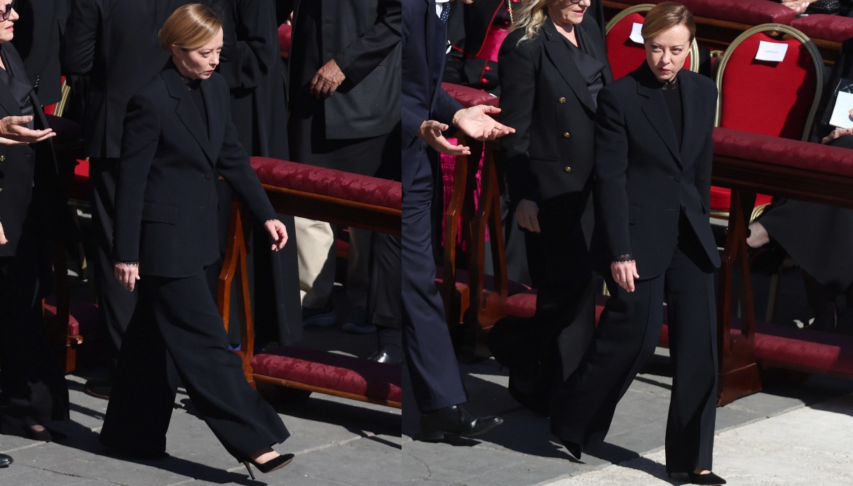 Tra le presenze femminili più osservate, la premier Giorgia Meloni ha offerto un’immagine di sobrietà e rigore che non è passata inosservata. Fedelissima al protocollo vaticano, Meloni ha indossato un completo nero dal taglio asciutto, con giacca doppiopetto e pantaloni lunghi, coprendo anche il collo con una blusa nera. I capelli raccolti in uno chignon ordinato e l’assenza di gioielli vistosi hanno sottolineato ancora di più il rispetto per la solennità del momento.