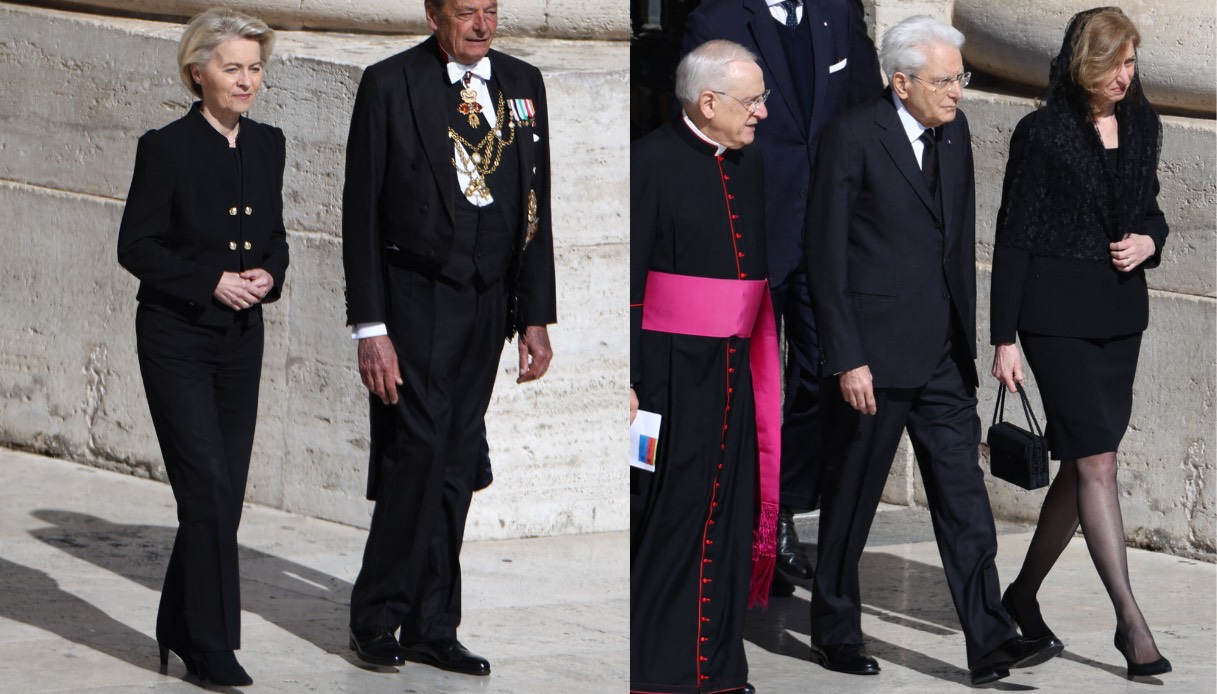 A rappresentare l’Italia c’erano anche il presidente della Repubblica Sergio Mattarella, in impeccabile completo nero con camicia bianca, e la figlia Laura, che ha scelto una gonna al ginocchio e una mantiglia ricamata, ulteriore segno di rispetto nei confronti della tradizione cattolica.