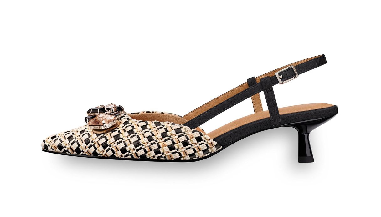 Le slingback esistono in diverse forme e tessuti: per i look serali o più formali, ad esempio, potreste scegliere un modello con punta tonda e materiale texturizzato con effetto glitterato.