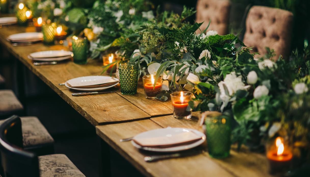 Una delle tendenze floreali più in voga? Steli sinuosi e composizioni che sembrano crescere direttamente dal tavolo. Se sognate un effetto “giardino incantato”, disponete un lungo runner botanico al centro del tavolo, con muschio, erbe, fiori e steli sporgenti ai bordi.