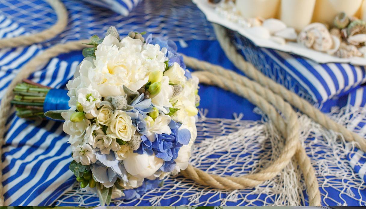 Per i matrimoni estivi, sempre più sposi scelgono palette dai toni pastello tenui. Questo tipo di combinazione, che evoca l’estetica rilassante del mare, combina il blu e l’azzurro con tonalità limone delicate e verde salvia chiarissimo. Ma volendo si possono introdurre anche toni neutri come marroni caffè e alabastro.