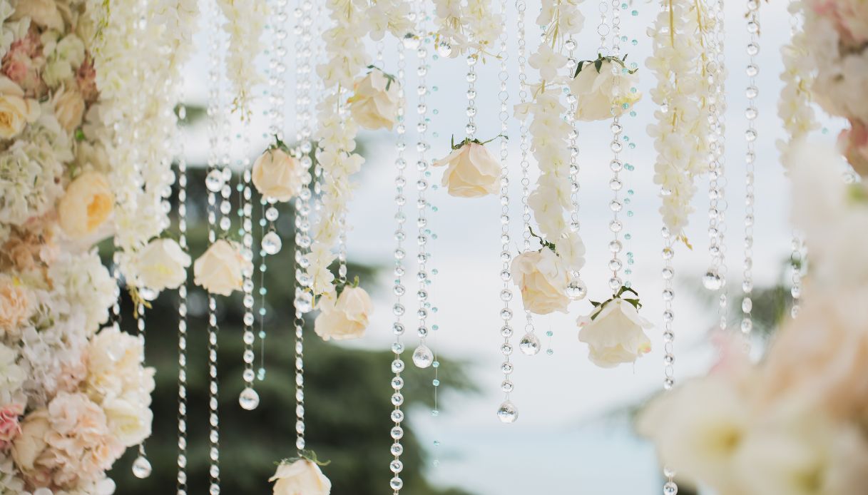 Archi o colonne decorate con ghirlande di perle intrecciate saranno ottimi alleati di stile: potete abbinarle sia a fiori bianchi in inverno o estate, che al foliage per un matrimonio autunnale. Se cercate per l’altare una soluzione ancora più originale, potete invece utilizzare un telo con perle cucite o distribuite in modo discreto per un effetto luminoso.
