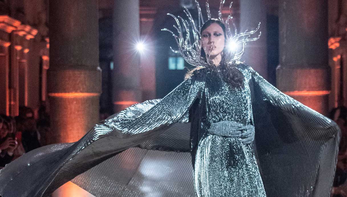 A fare da sfondo alla sfilata, le scene allestite dall’artista Matteo Paoletti Franzato nel cortile di Ca’ Rezzonico.
