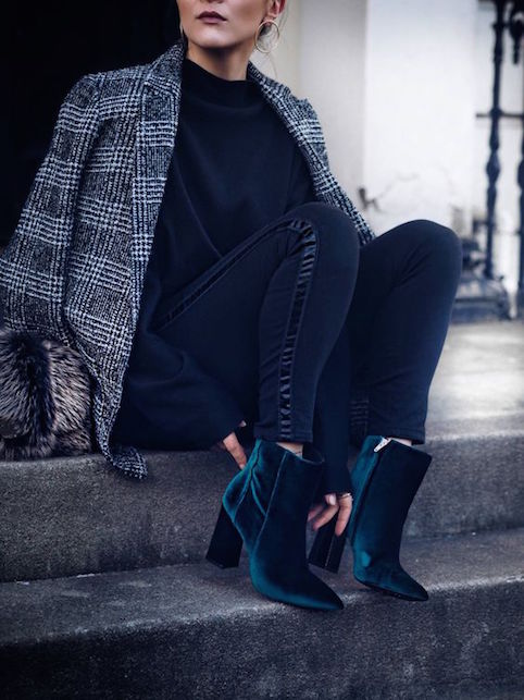 Il tacco dei vostri ankle boots può essere più o meno alto e più o meno largo. Per capirsi, potete tranquillamente portare stivaletti tipo Chelsea, quindi a tacco basso, così come tacchi più alti, che possono essere a spillo, come nella foto sopra, o più larghi (e comodi), come nella foto sotto. Se avete polpacci particolarmente sottili e vi piace uno stile grintoso, allora valutate l’idea di un paio di calzini che spuntano dal gambale!