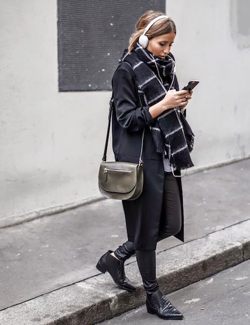 Avete mai visto una parigina con il piumino? No, ecco, appunto. Le parigine il piumino non lo mettono: si mettono il cappotto, un bel maglione caldo sotto e una mega sciarpa che le avvolga anche sulle spalle. A prova di spifferi! Se avete freddo, scegliete un taglio morbido, come si diceva sopra, e potete mettere sotto un piumino centogrammi.