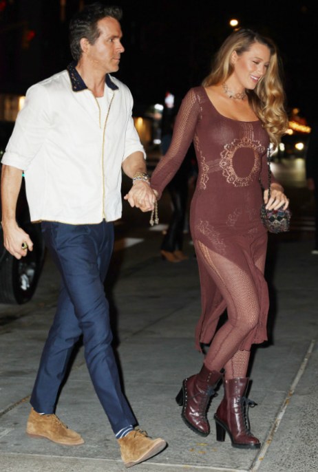 Blake Lively sfoggia sempre degli outfit super alla moda, come quello indossato per uscire a cena: un look total marrone con tanto di calze. Da copiare.
