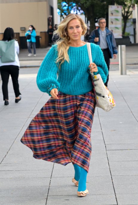 A mostrarci come sfoggiarli, ad esempio, è stata Sarah Jessica Parker, vera regina di stile, che li ha indossati per arrivare sul set di And Just Like That, in un turchese intenso che si abbina al maglione e gioca con i contrasti con la gonna.