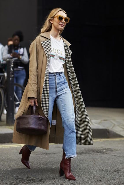 Il trench con i jeans dà il meglio di sé: potete sceglierlo nel colore che preferite, non necessariamente beige, e portarlo anche in versione easy, quindi non troppo stretto e sagomato, ma morbido e con la cintura slegata.