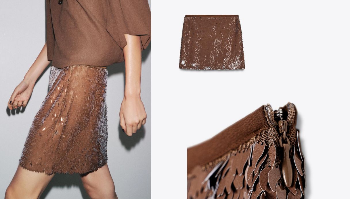 La minigonna a sirena più furba che ci sia è di Zara ed è perfetta perché è a pantaloncino (anche se non sembra!). Il taglio è svasato a vita alta con fodera interna (quindi, non trasparente). Facile da abbinare e pratica anche per ballare, andare in bicicletta e camminare in città.