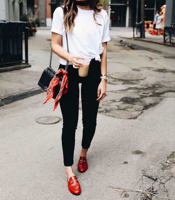 In assoluto è il mio modo preferito di indossare il rosso. A prescindere dal fatto che sia un paio di scarpe o una borsa, fate in modo che quell’accessorio sia il centro dell’attenzione, quindi, come vi ho spiegato anche per il giallo, non mettetene più di due insieme dello stesso colore. Se devo darvi un consiglio personale, io ne indosserei solo uno che attiri lo sguardo.