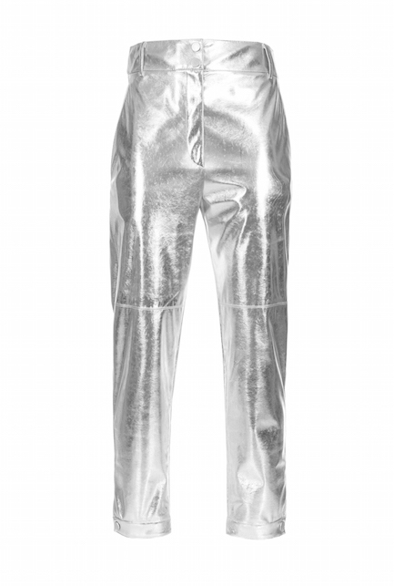 Se invece siete delle pro, potete passare già ai capi più impegnativi, come pantaloni o capi spalla argentati. Il mio consiglio è di non strafare con i colori. Toni pastello e bianco sono l’ideale per mantenere la luce di questi materiali scintillanti. Una sola raccomandazione: consiglio di posizionare il capo argentato nella parte del corpo che sentite come un punto di forza. I riflessi metallici tendono ad allargare.