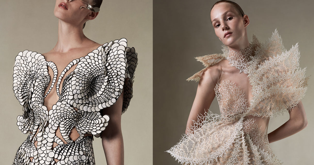 Un passato da ballerina, apprendista da Alexander Mc Queen, la giovane stilista olandese ha creato il proprio marchio nel 2007 e da allora ha collaborato con architetti, artisti, scienziati e tecnici, per realizzare capi in 3D, sperimentando sempre.