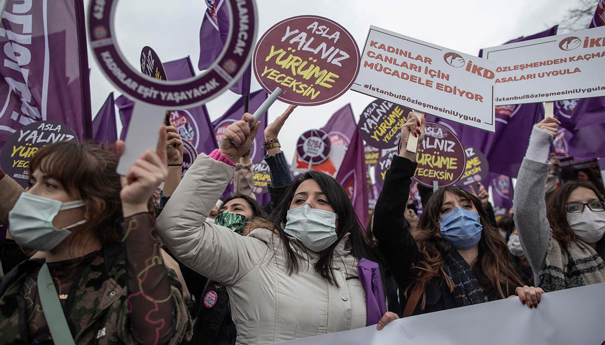 Per questo già da un anno in Turchia si parlava della possibilità di venire meno agli impegni presi ritirandosi dalla Convenzione; ipotesi che aveva scatenato parecchie proteste e manifestazioni in tutto il Paese. Un Paese in cui solo nel 2020 ci sono stati oltre 400 femminicidi e che ha iniziato il 2021 con una tendenza allarmante: 65 femminicidi nei primi 65 giorni, che significa che una donna ogni giorno è morta per mano di un uomo.