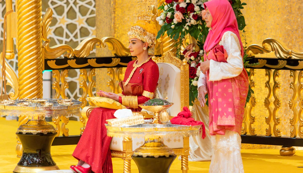 Mateen e Anisha Rosnah del Brunei sono apparsi pubblicamente per la prima volta dopo il loro sontuoso matrimonio, durato 10 giorni. La Principessa ha scelto un abito bianco con dettagli trasparenti che sembra ispirato al look sfoggiato da Kate Middleton lo scorso giugno.