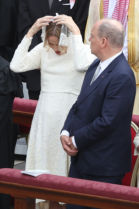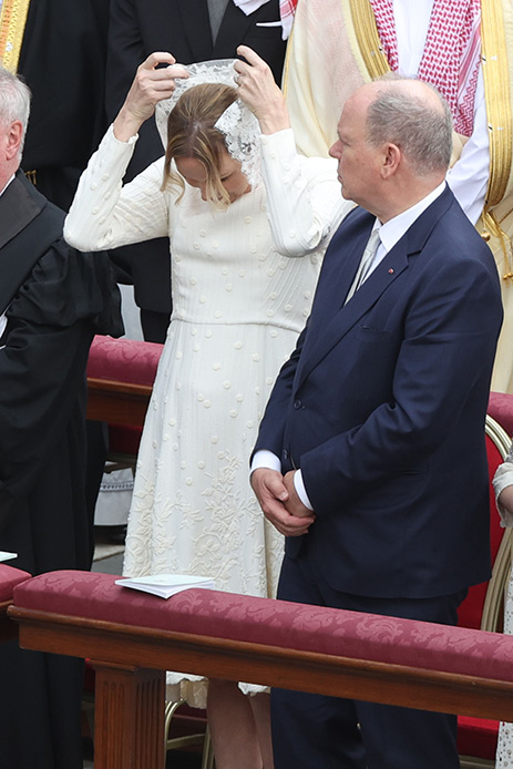 Charlene come Letizia di Spagna erano vestite di bianco, secondo quello che è il privilegio del bianco concesso alle Principesse e Regine cattoliche.