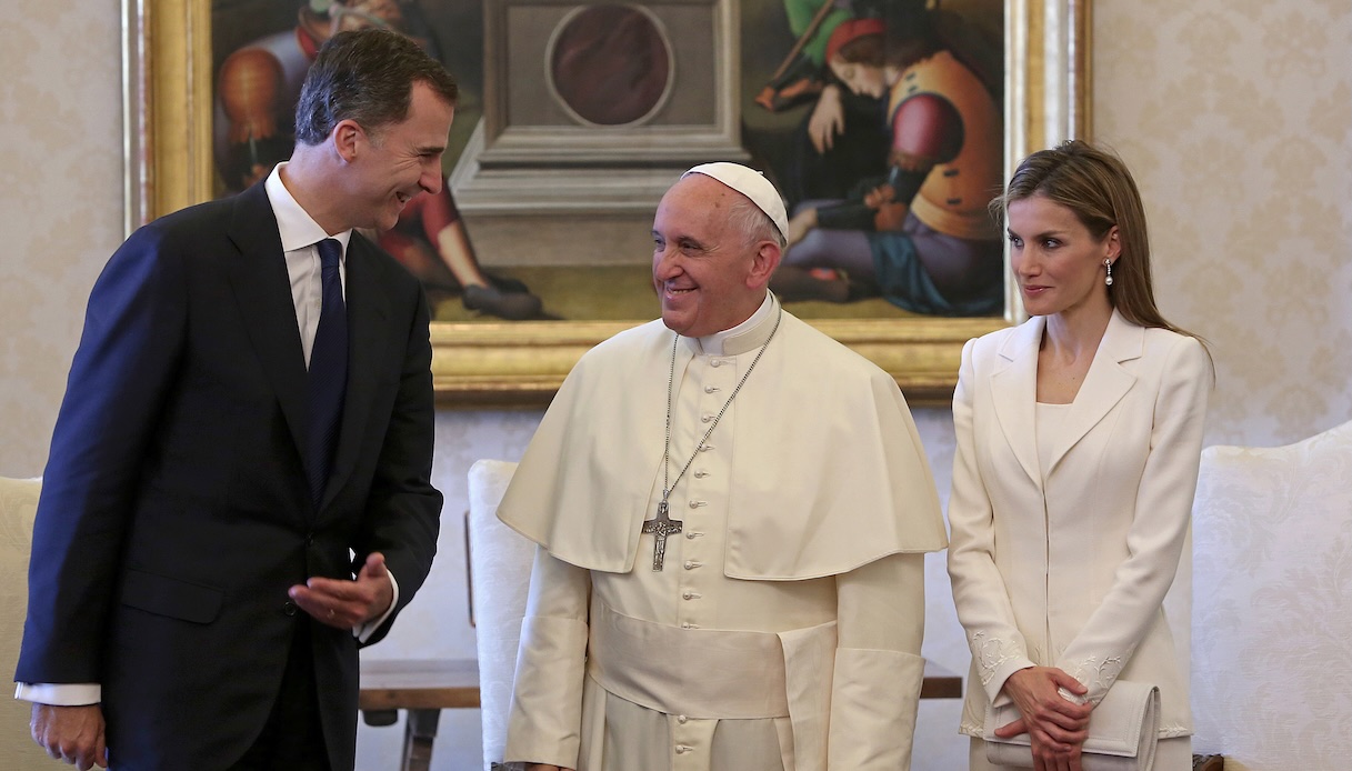 Come già accennato, nelle udienze papali le donne sono invitate a indossare indumenti neri in segno di rispetto, anche se dagli anni Ottanta la regola è diventata meno stringente, anche per le Sovrane. Le regnanti cattoliche però hanno il “privilegio del bianco”, prima fra tutte Letizia di Spagna, che nel 2014, nel suo primo viaggio da Regina, decise di indossare un tailleur bianco ottico con dettagli ricamati sulle maniche firmato Felipe Varela, quello che allora era il suo designer preferito.