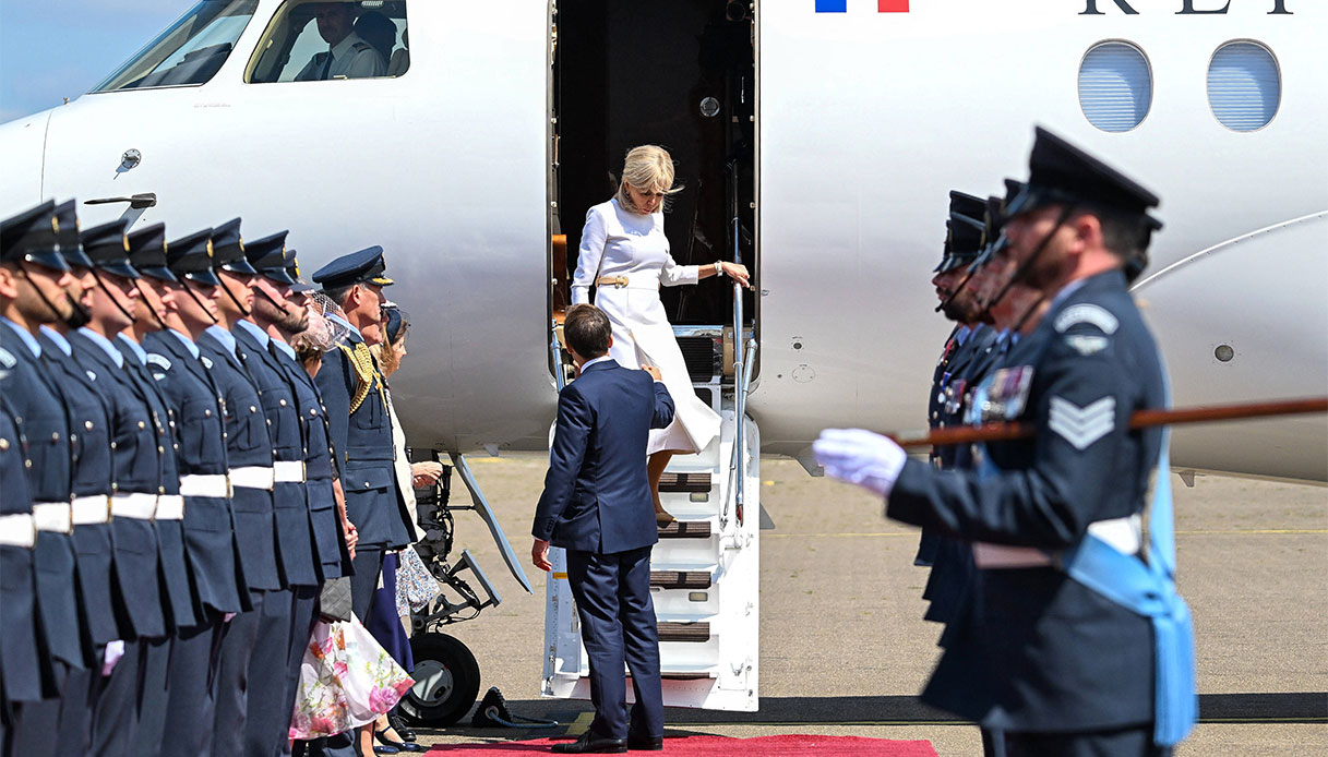 Mentre scendeva la scaletta dell’aereo, il Presidente francese ha teso la mano verso Brigitte per aiutarla. Ma la Première Dame ha fatto finta di niente e ha preferito aggrapparsi al corrimano, ignorando completamente il marito. Un’altra scena degna di Melania e Donald Trump.