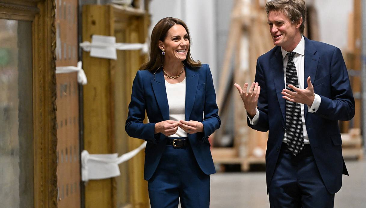 Kate Middleton è ricomparsa in pubblico prima del previsto, mostrandosi con uno splendido tailleur blu di Alexander McQueen. La Principessa del Galles ha infatti visitato il nuovo V&A East Storehouse, un distaccamento del Victoria and Albert Museum, che conserva 500mila oggetti, appartenenti al mondo della moda, del cinema, dello spettacolo e delle arti visive.