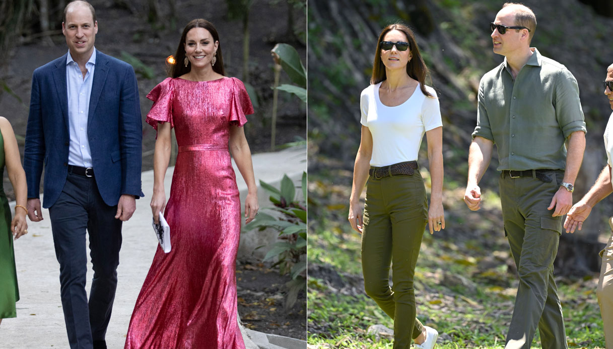 Dopo il look in pizzo blu e l’abito floreale con sandali di corda, Kate Middleton ha sfoggiato un outfit decisamente più casual e comodo per la vista a un antico templio maya nel cuore della foresta del Belize. Accanto a lei William che perfettamente coordinato con la moglie, ha indossato un completo, camicia e pantaloni sportivi verde salvia. Ma torniamo per un attimo a Kate.