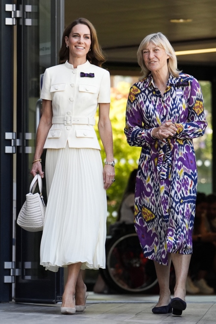 Per fare degli esempi recenti, pensiamo al look sfoggiato da Kate lo scorso 8 maggio quando, in occasione del concerto a conclusione delle commemorazioni dell’80° anniversario del VE Day, ha indossato un look simile color crema in bouclé e chiffon, che a sua volta aveva indossato per il concerto del Giubileo di Platino nel 2022. O ancora, ricordiamo il look dello scorso 16 giugno, stavolta con l’abito blazer bianco abbinato a un cappello di Sean Barrett.