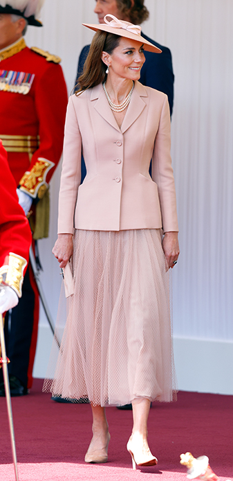 Soprattutto, però, è una leggenda della moda e Kate non è certo la prima tra le donne blasonate a indossarlo. Per fare esempi recenti, prima della Principessa del Galles, abbiamo visto indossare la Bar Jacket 30 Montaigne Rose Des Vents a Beatrice Borromeo nel 2022 alla Festa Nazionale di Monaco.