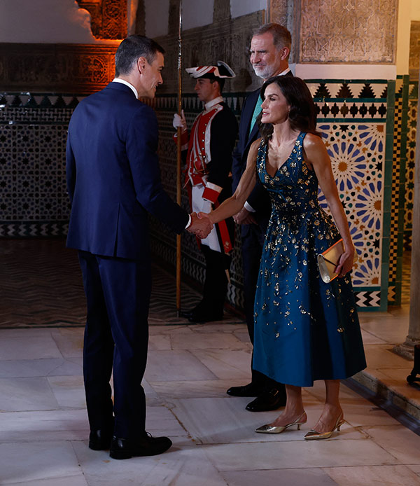 Letizia di Spagna e suo marito Felipe hanno offerto una cena di gala all’Alcázar di Siviglia in concomitanza con la Quarta Conferenza Internazionale delle Nazioni Unite. L’occasione dunque è di quelle speciali e la Reina è stata decisamente all’altezza della situazione.