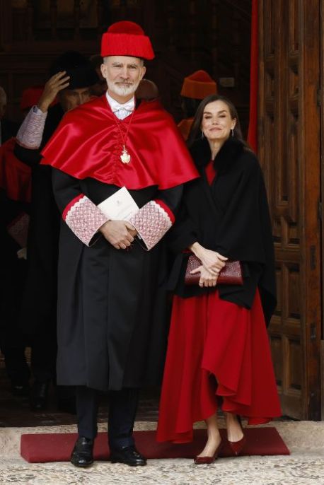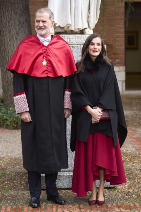 Da sempre molto amata e seguita, la coppia di sovrani composta da Re Felipe e Letizia di Spagna è anche molto apprezzata per i look sfoggiati nelle varie occasioni. La stessa Letizia Ortiz è ormai considerata una vera e propria icona di eleganza, al pari di altre grandi sovrane del passato come Lady D, Grace Kelly e, più recentemente, Kate Middleton, anche loro esempio di glamour e stile ladylike. Sempre perfetta ed impeccabile, amante dello stile bon ton ma mai banale, questa volta Letizia ha scelto un bel colore acceso per partecipare alla cerimonia che ha assegnato il titolo di Dottore Honoris Causa a Re Felipe. Un look di coppia che non è passato di certo inosservato e che ha raccolto diversi consensi per l’impeccabile eleganza, ma soprattutto per essere in pendant dal punto di vista cromatico. Il sovrano infatti, per ricevere la prestigiosa nomina assegnatagli dall’Università di Alcalà per il suo impegno quotidiano nell’ambito della ricerca e della cultura, ha indossato la divisa d’ordinanza composta da mantella rosso porpora, berretto e toga nera: un look consono all’evento che matchava perfettamente con il seducente abito rosso vermiglio indossato dalla consorte.