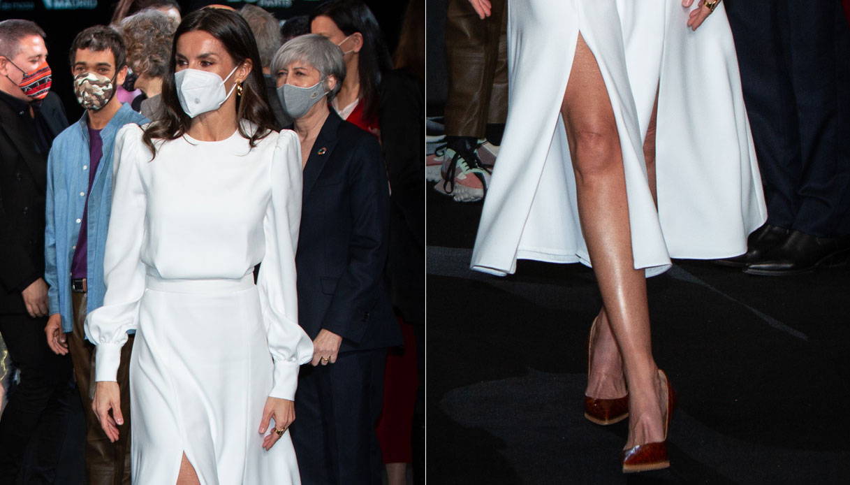 A dimostrazione però della grande versatilità della gonna a pieghe, la Reina l’ha abbinata nel febbraio 2021 a un top nero e ai suoi stivali più seducenti, rinnovando completamente la sua immagine.