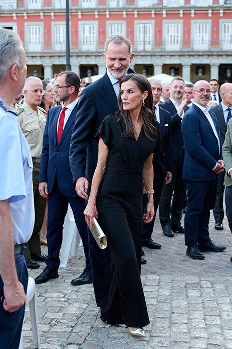 Letizia di Spagna ha celebrato l’undicesimo anniversario di regno di suo marito Felipe e al concerto si è presentata in jumpsuit di Hugo Boss e con un bracciale in oro e diamanti preziosissimo. Anche il Re la trova irresistibile.