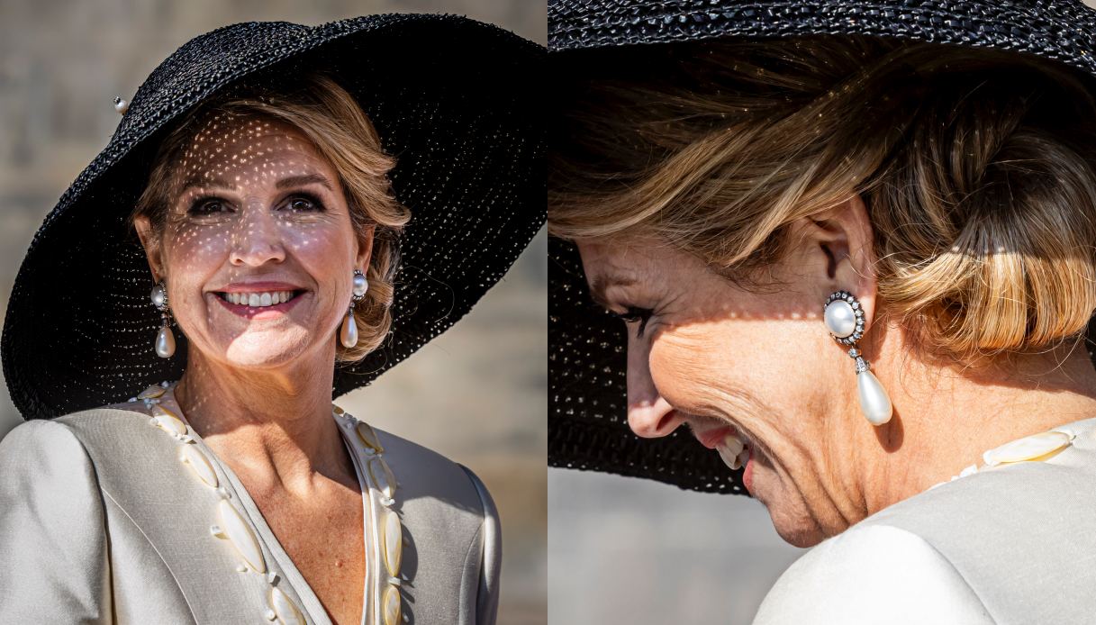 Gli accessori di Maxima d’Olanda, tra perle e rafia